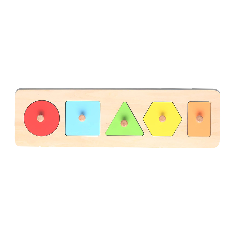 - Includes 6 colorful wooden shape pieces (circle, square, triangle, etc.)